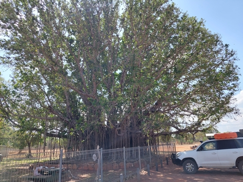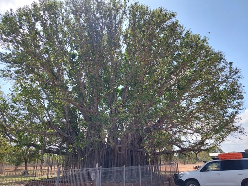 Giant fig tree at Mataranka, a small township in the NT. This magnificent tree had a huge span and many vertical supporting ‘branches’.