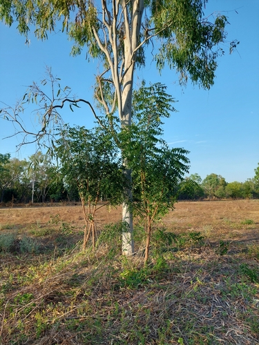 Need tree infestation in the NT. Sad to see this across the top end. Looks like the need seeds are dropped by bats or birds from branches of native trees…then Neem trees grow up around the native and eventually suffocate it. Whole thickets of Neem are visible in riparian areas. These were on a station near Katherine in the NT.