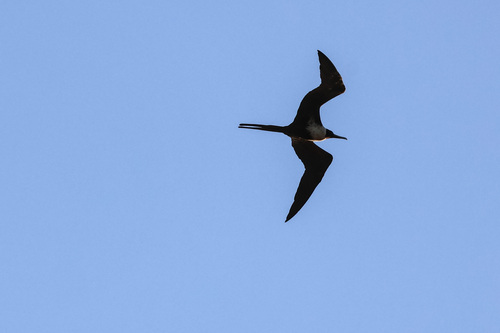 These Frigate birds regularly soared over Dundee Beach, near Darwin in the NT, while we were there, towards the end of the dry season. They could be seen in dozens, spiraling in the thermals; or in the early mornings chasing terns to steal their catch. Very graceful birds, though their behaviour is piratical.