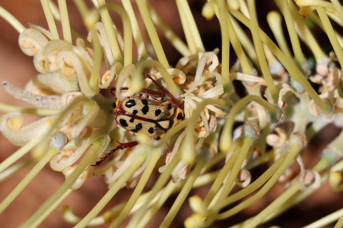Spotted feeding on Grevilleas and was much too busy to be disturbed. Photo taken with Canon R10 and 100-400mm lens.